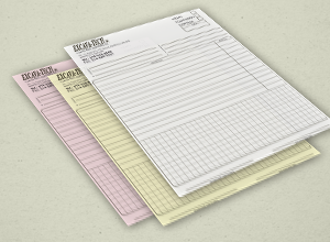 Formulaires NCR 3 copies, blanc et jaune imprimés en couleurs PMS ou en CMYK, avec plusieurs options